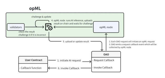 OAO基于opML在以太坊和Optimism上运行,生成可验证的人工智能推理。